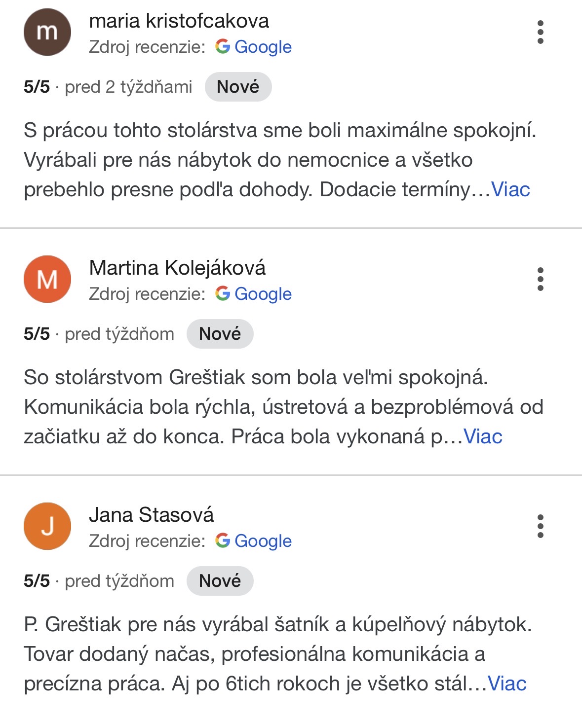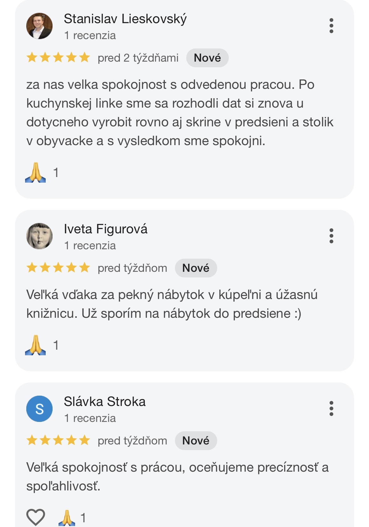 S prácou tohto stolárstva sme boli maximálne spokojní. Vyrábali pre nás nábytok do nemocnice a všetko prebehlo presne podľa dohody. Dodacie termíny boli vždy dodržané, práca bola kvalitná a všetko perfektne sedelo na milimeter. Oceňujeme profesionálny prístup, spoľahlivosť a precízne spracovanie.